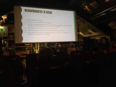 - Wie lässt sich individuelle Selbstbestimmung und Handlungsfähigkeit (Agency) stärken? Wie wird Konsens in den Arbeitsalltag integriert? Und wie wird man ein*e Ally (Verbündete*r)?